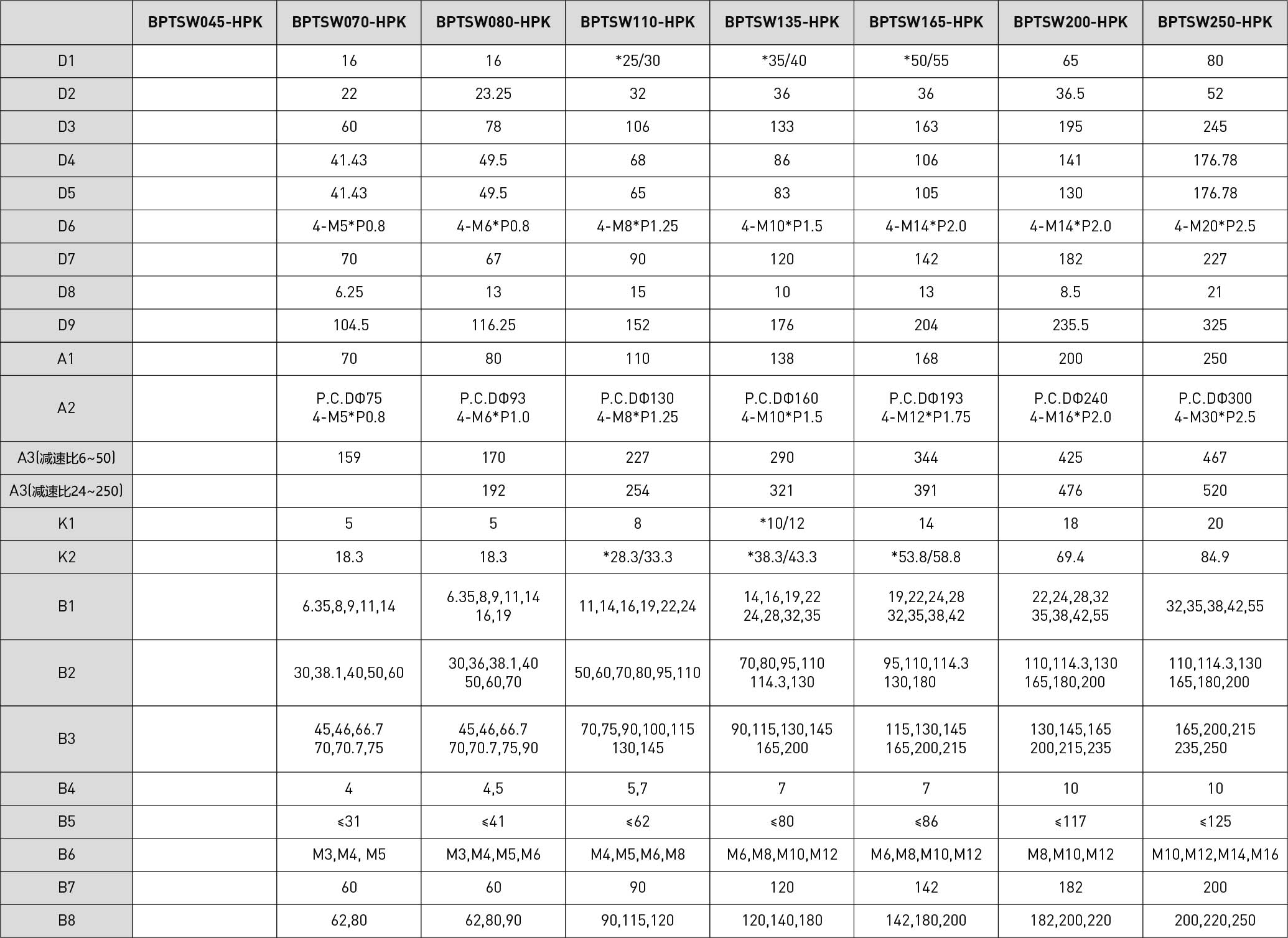 技术参数单位减速比BPTSW045BPTSW070BPTSW080BPTSW110BPTSW135BPTSW165BPTSW200BPTSW250